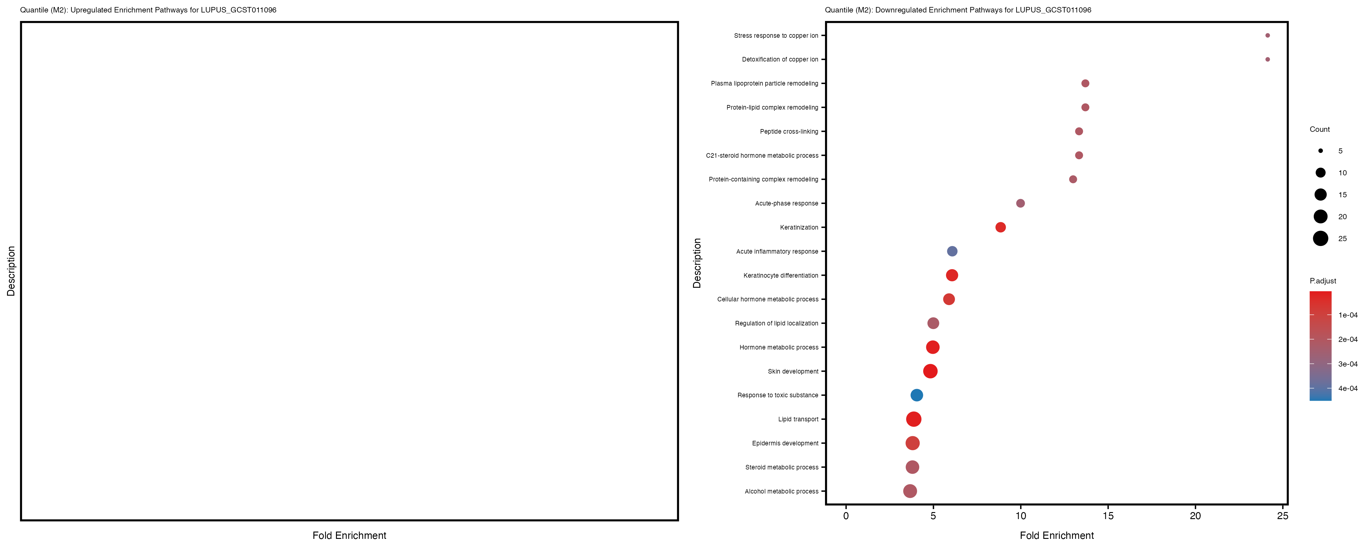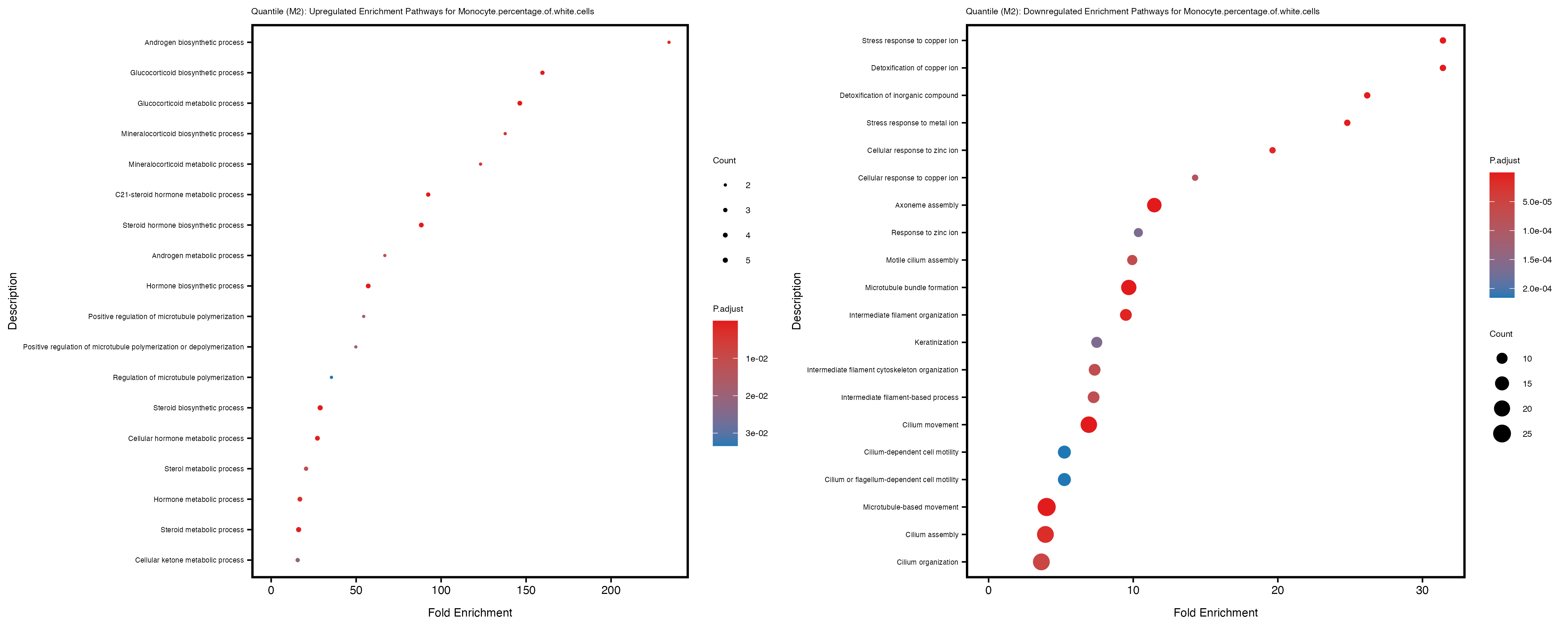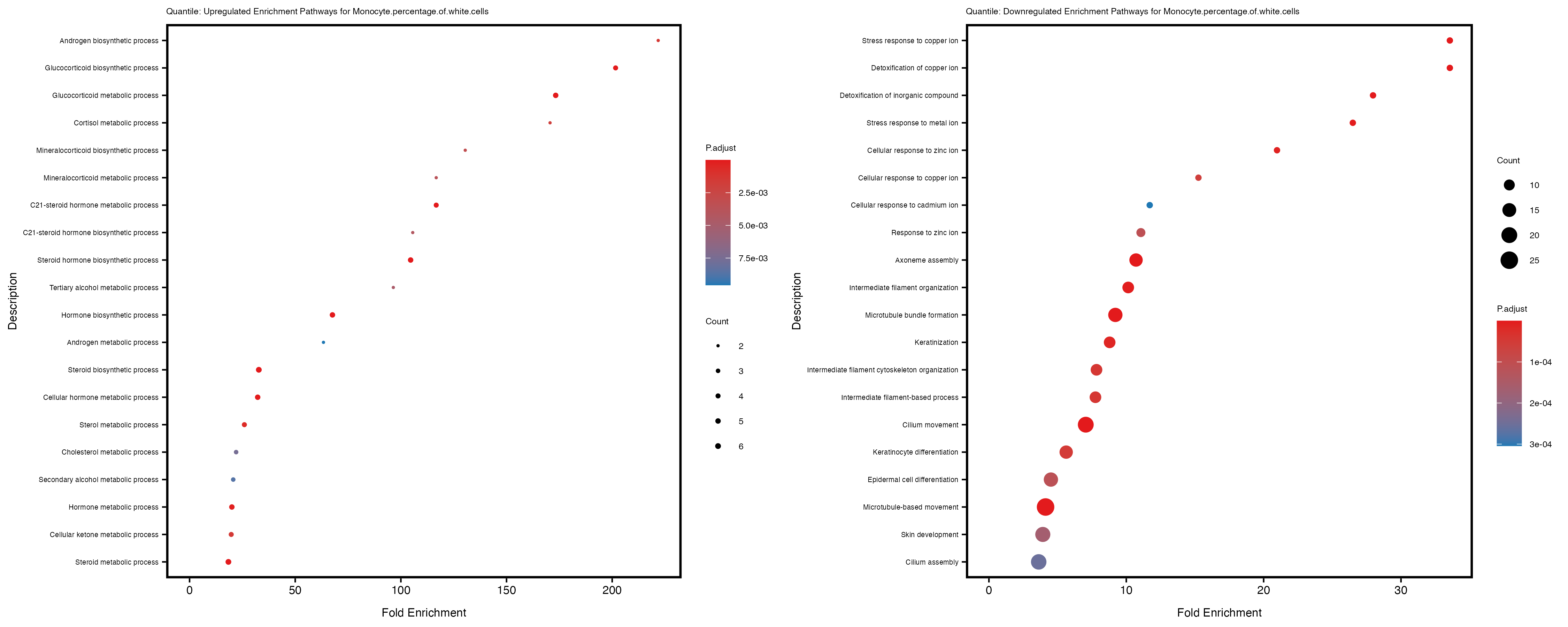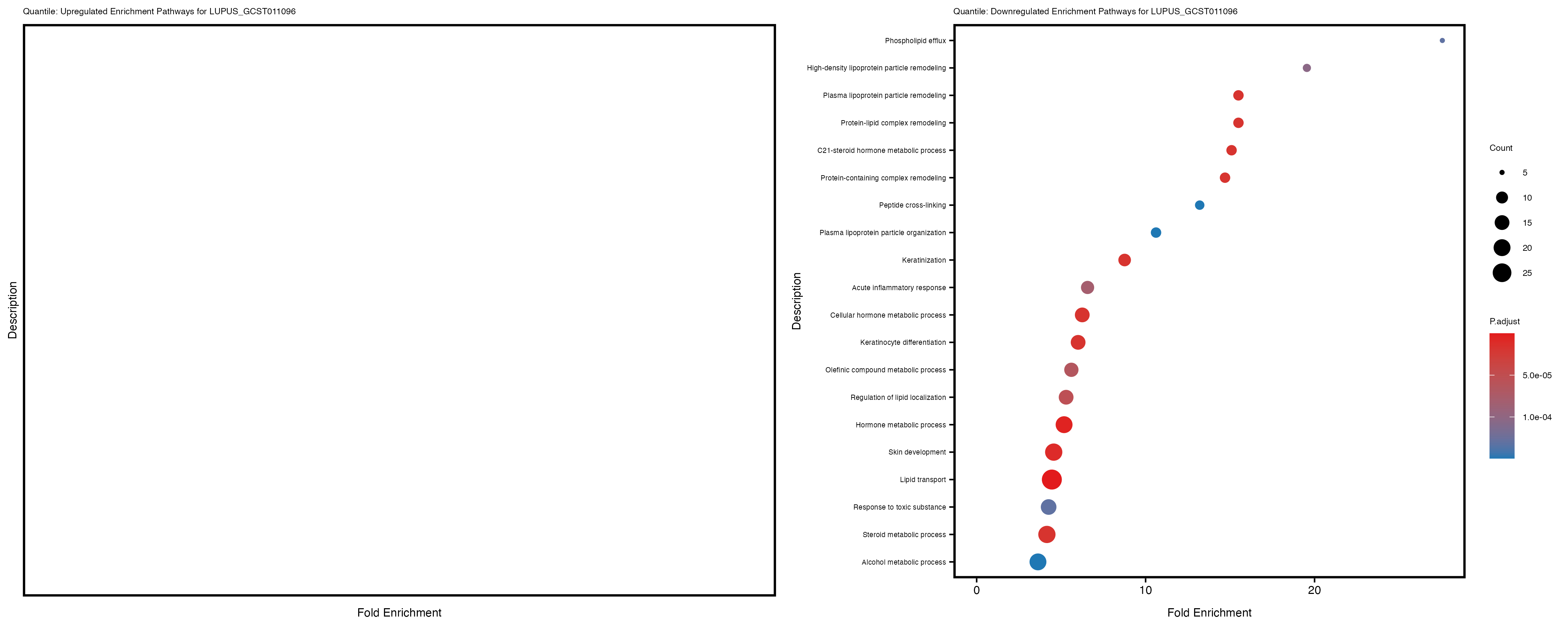 Additionally, the GO enrichment analysis provides insights into the biological pathways and processes that are potentially involved in these traits. BgRatio is the ratio of the total number of genes in a specific pathway (GO term) to the total number of genes. GeneRatio is the ratio of the number of genes enriched in specific pathway to the number of genes that were tested in the analysis. FoldEnrichment is the ratio of GeneRatio to BgRatio, showing how much more enriched a pathway is in your genes of interest compared to the total gene set. Higher FoldEnrichment values indicate that a particular GO term is overrepresented in your gene set compared to the general gene pool, suggesting it may be biologically relevant for the trait. Some traits show higher pathway enrichment in the quantile analysis, indicating that stratification by PRS may provide more biologically meaningful results.