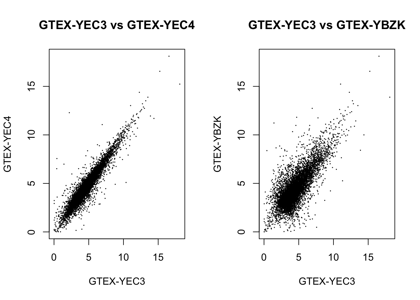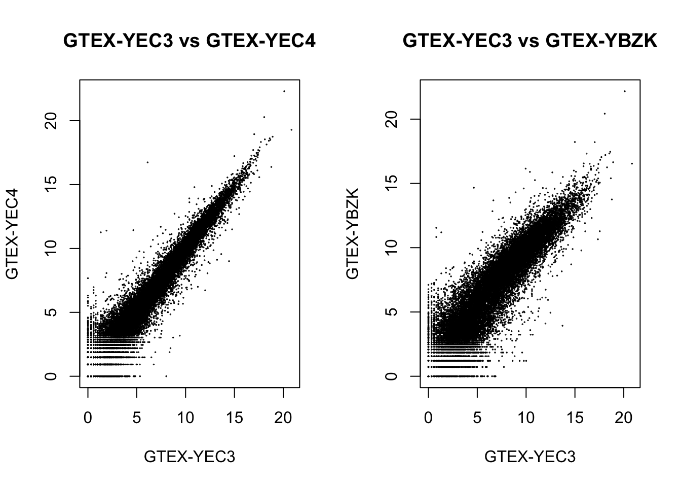 plot(., cex=.1, main = "GTEX-YEC3 vs GTEX-YEC4")